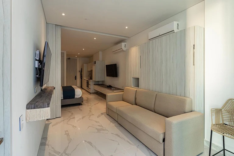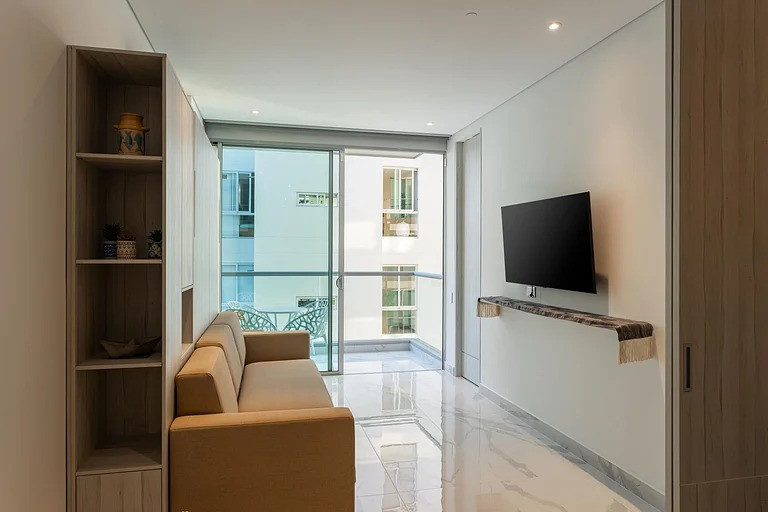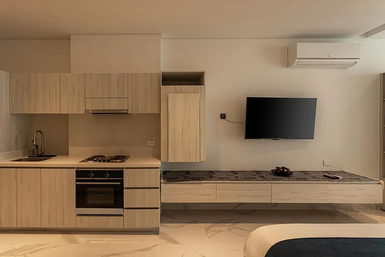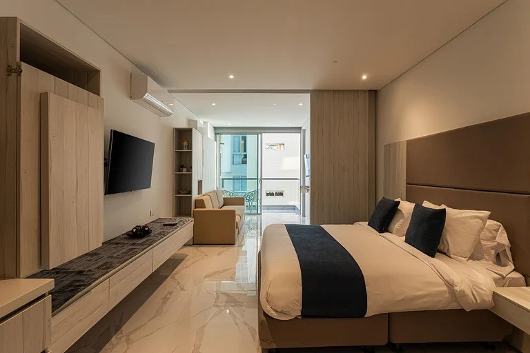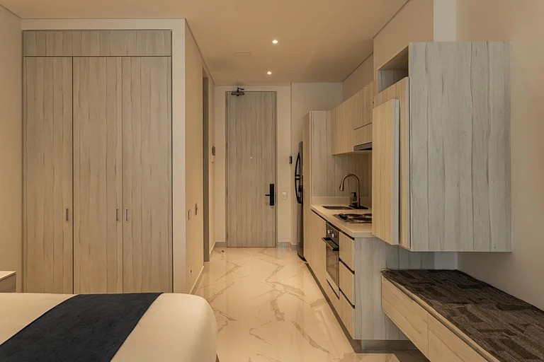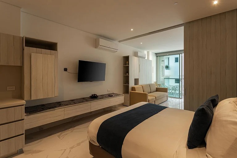 CRD- SE VENDE LOFT DE LUJO Hermoso loft ubicado en piso 15, con espectacular vista al mar y a la montaña, ideal para vivir, vacacionar o invertir en renta turística. Área: 49 m² Precio: $680.000.000 Tipo: Loft El apartamento cuenta con dos ambientes independientes, separados por puerta corrediza. Cada ambiente dispone de cama matrimonial y baño completo, brindando comodidad y privacidad. Cocina integral completamente equipada, calentador de paso, gas domiciliario, pisos en cerámica y mármol, excelente iluminación natural y balcón privado. Se entrega totalmente amoblado, listo para disfrutar o generar ingresos desde el primer día. Incluye parqueadero y cuarto útil amplio. Zonas comunes y amenidades: Piscina Jacuzzis Rooftop con doble zona BBQ y vista panorámica Coworking con salas privadas Restaurante Salón de eventos Salón de juegos Zona infantil Zona de lavandería • Lobby de doble altura • Ascensores • Vigilancia 24/7 y planta eléctrica total Edificio con arquitectura tipo hotel, tecnología de punta y diseño moderno. Ubicación estratégica: Detrás de los Hoteles Hilton e Irotama, a 10 minutos caminando del Centro Comercial Zazue y a 20 minutos en carro del centro histórico.