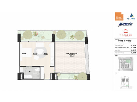 PV-26019-ap The Corner, ubicado en Aguacatala, es un proyecto de alquiler flexible con 25 suites, 25 apartamentos y 1 local comercial, ideal para estadías cortas y medianas. Ofrece una inversión más rentable que la vivienda tradicional, ya que está dirigido a nómadas digitales y viajeros que buscan adaptarse a su estilo de vida. Su ubicación estratégica cerca de vías principales, colegios, universidades y centros comerciales lo convierte en un lugar de fácil acceso a transporte público, gastronomía y cultura local. El proyecto cuenta con: Gimnasio Coworking Yoga Open Rooftop Lobby Lavanderia SUITES DESDE: $651.270.000 APARTAMENTO DESDE: $1'447.245.320