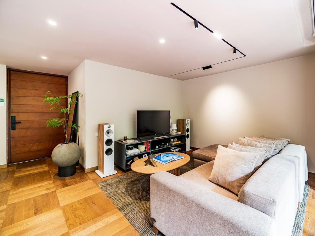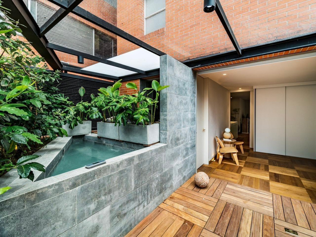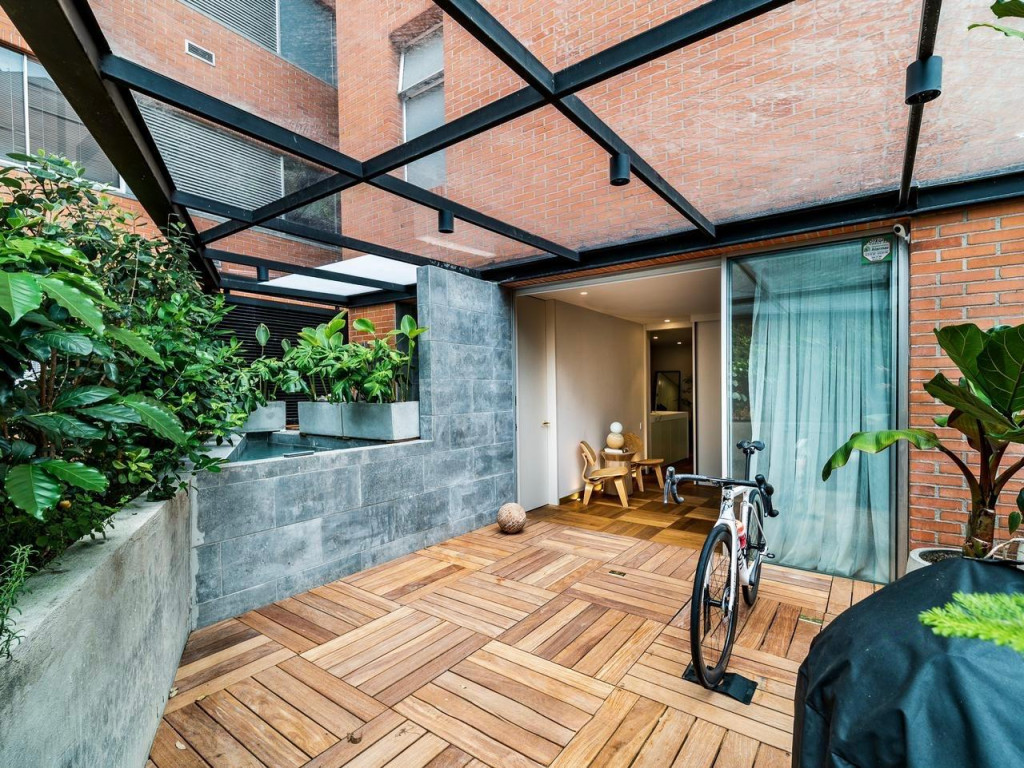 CM - 9887669 * GPV -VENTA - Apartamento de 70 m² de área interna (750 pies²), complementado con 35 m² de balcón y terraza (370 pies²). Cuenta con una habitación y un baño. Dispone de domótica completa, rieles magnéticos y cortinas automáticas, ofreciendo confort y tecnología de vanguardia. El inmueble presenta piso de madera estructurada con diseño personalizado, manijas y herrajes importados de Londres en latón macizo, y acabados de alta calidad. El baño incluye jacuzzi con revestimiento en baldosa, mientras que la ducha se encuentra ubicada en la terraza, brindando una experiencia al aire libre. Los revestimientos del baño son importados de España. La terraza cuenta con deck en madera de ipé plateado, con instalación a medida. La cocina está equipada con electrodomésticos de alta gama de las marcas Teka y Franke. Ubicado en un entorno rodeado de bosque, completamente silencioso y natural. Administración (2025): $440.000 Impuesto predial anual: $2.873.626 Precio: $950.000.000