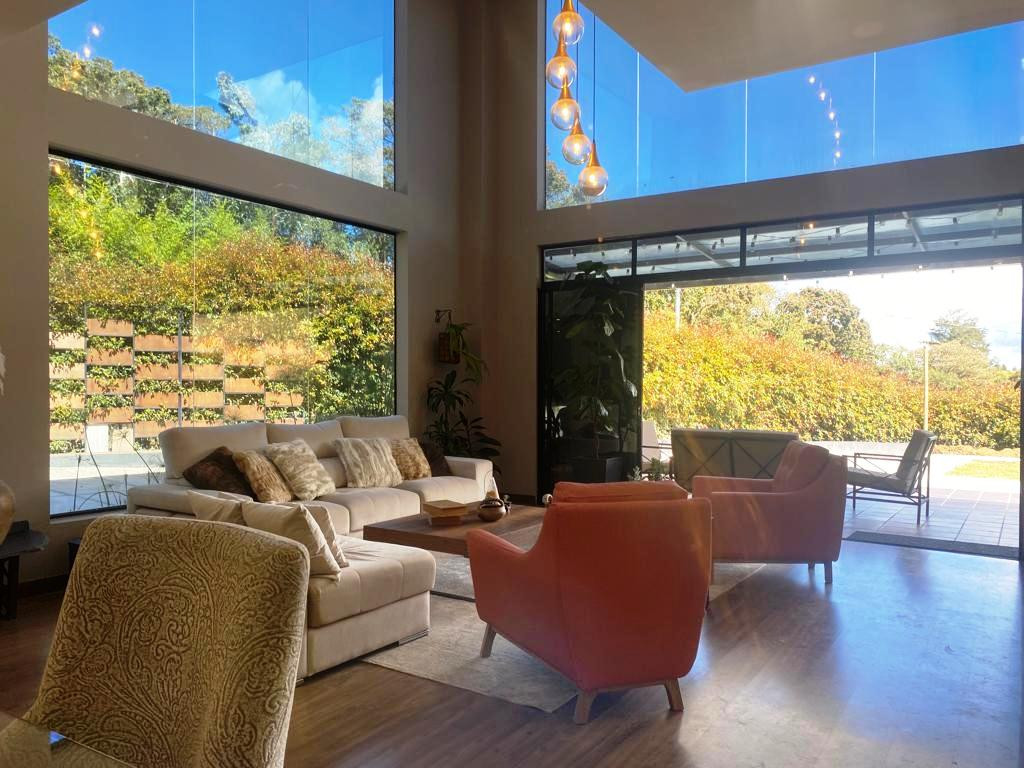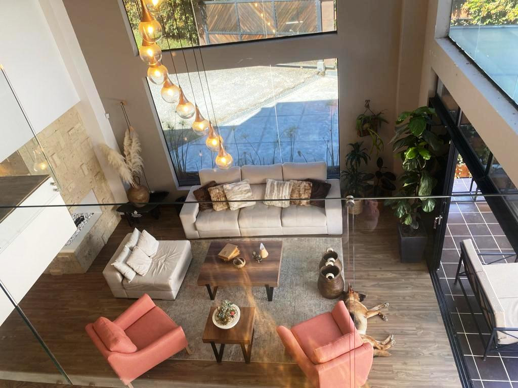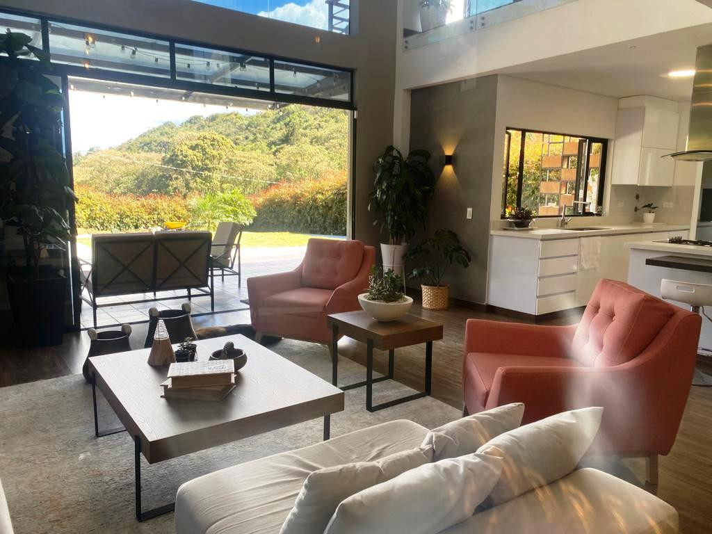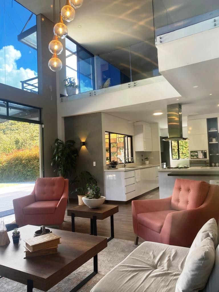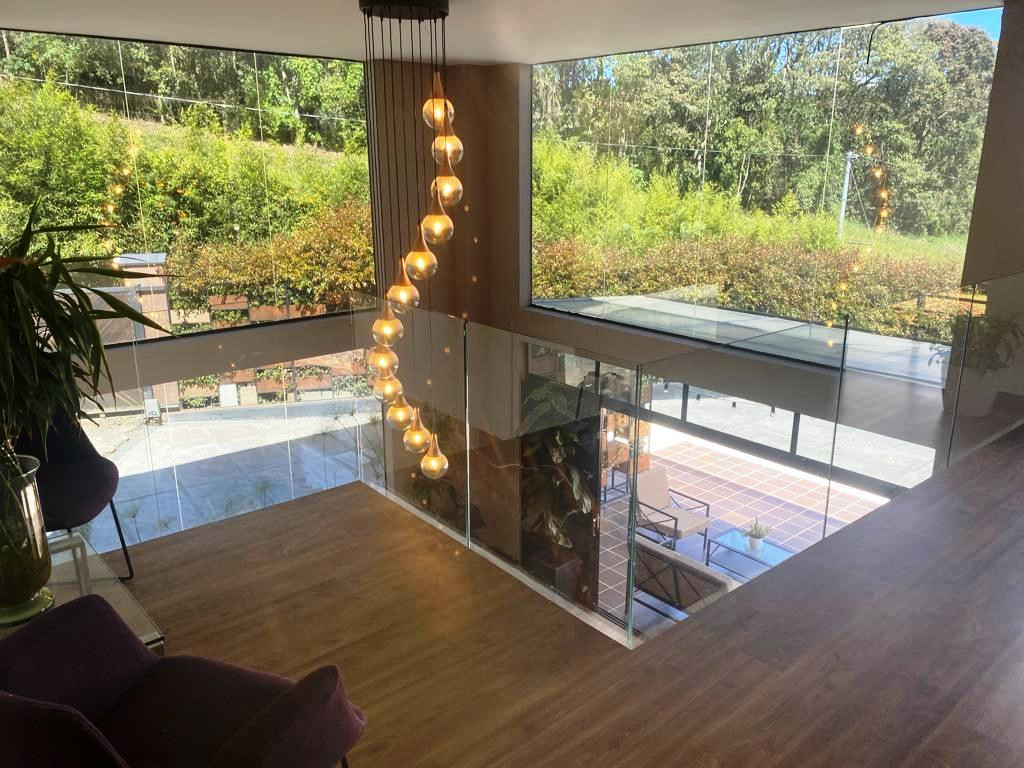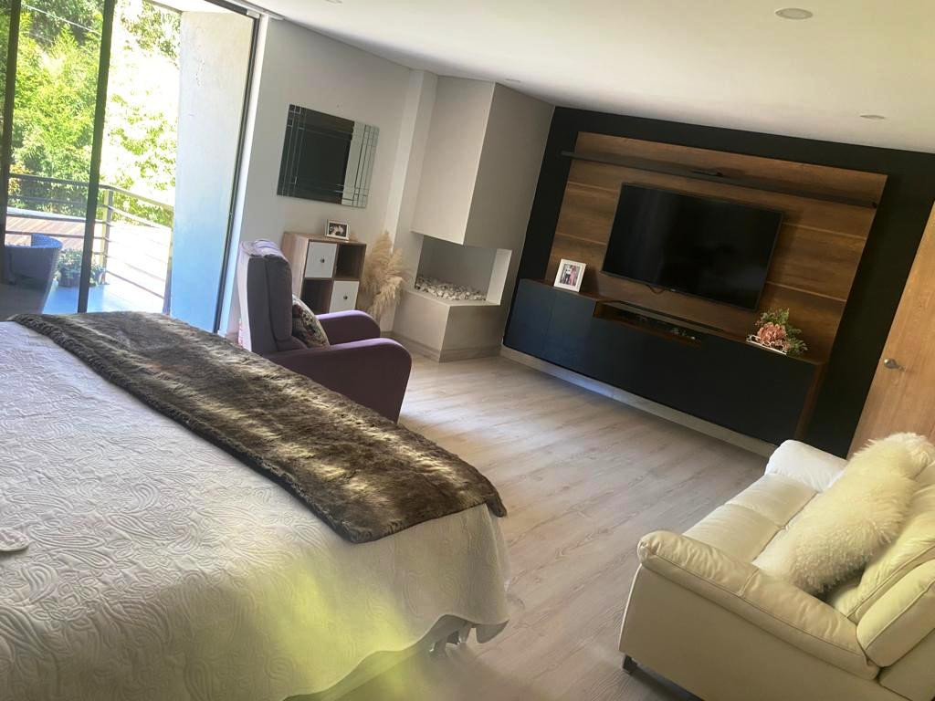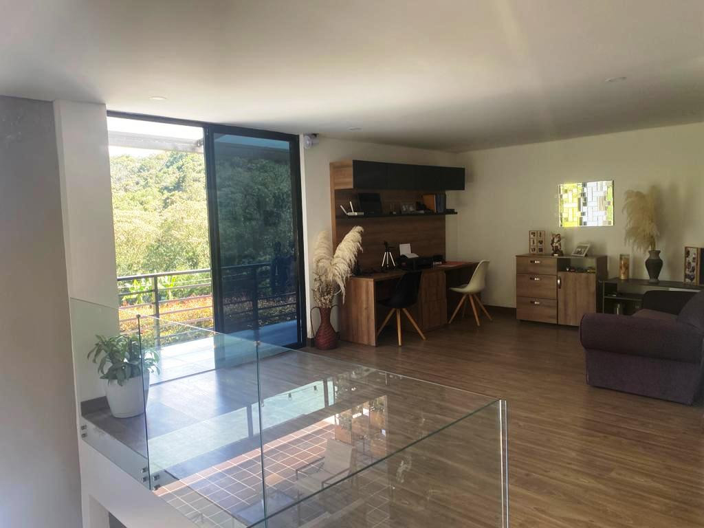 PV-22084- Vendo casa de 2 niveles en El Alto de Las Palmas - Vereda Perico, Envigado. Terreno de 1.100 m2 y construidos 400 m2. En primer nivel: Zona social doble altura y balcón interno, cocina integral abierta con isla que comunica con el área social y con el deck, deck de 70 mt, amplia zona de ropas, baño social. 2 habitaciones con baño y closet; En segundo nivel: Alcoba principal con antesala, balcón, baño y vestier, 2 alcobas más con baño y vestier, oficina con balcón, sala TV. Parqueadero para 4 carros y 10 visitantes, cuarto útil, Moderna, Todos los espacios son amplios e iluminados. Zona de jardín totalmente aprovechable, Portón eléctrico, Alarma, Circuito cerrado de TV.