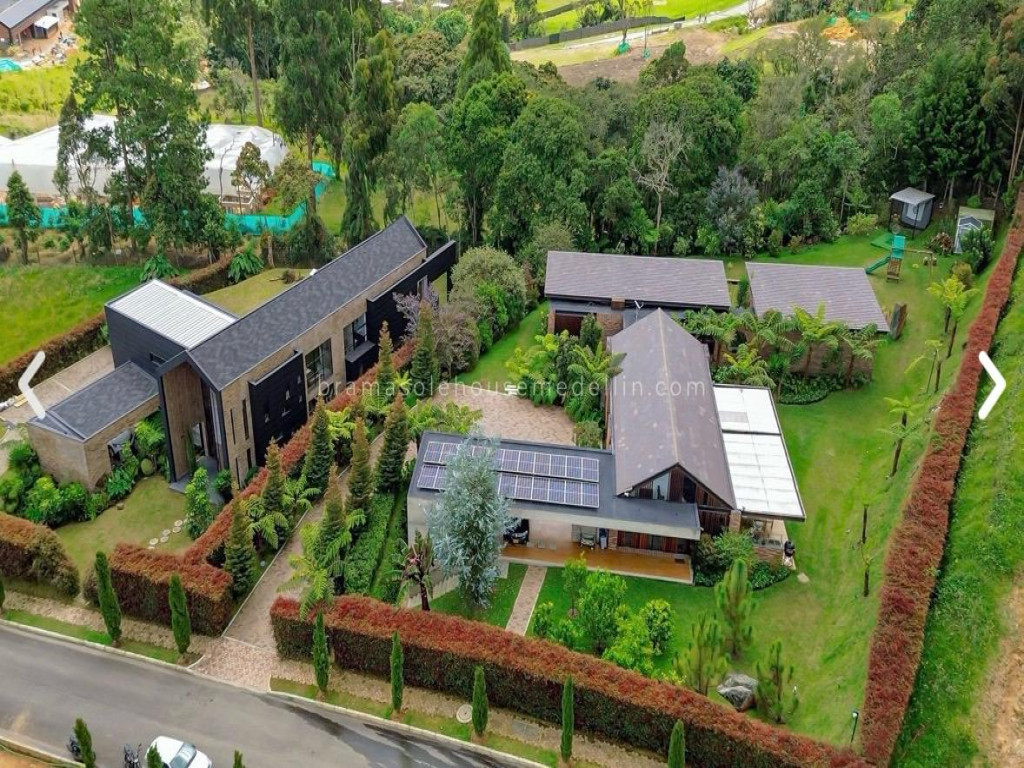 CM - 9894473 * GPV -VENTA - Exclusiva residencia contemporánea ubicada en el sector Las Palmas, Envigado, a pocos minutos de Medellín, ideal para quienes buscan privacidad, confort y conexión con la naturaleza. -Área del lote: 2.365 m² -Área construida: 464 m² -Precio: $5.940.000.000 COP (USD 1.600.000 aprox.) -Descripción: Esta espectacular casa es un refugio privado donde la arquitectura, la tecnología y la naturaleza se integran de manera perfecta. Sus amplios espacios, grandes ventanales y materiales naturales crean una atmósfera elegante, luminosa y acogedora. Cada detalle fue diseñado para brindar confort, eficiencia y calidad, logrando una experiencia de vida exclusiva en un entorno natural único. -Distribución: * 3 alcobas con baño privado y vestier * Estar de alcobas con biblioteca * Alcoba de servicio independiente * Baño social * Sala de TV / zonas complementarias -Características destacadas: * Lote amplio con total privacidad * Excelente iluminación natural * Cocina abierta o cerrada con puerta corrediza * Despensa y zona de ropas * Mesones en neolith (piedra sinterizada) * Pisos en mármol y piedra natural * Madera estructurada en alcobas -Tecnología y sostenibilidad: * Iluminación inteligente * Paneles solares (9,79 kW) * Planta de tratamiento y tanque de agua potable * Sistema de recolección de aguas lluvias * Riego automático * Calefacción por piso radiante en alcobas * Sistema hidroflo y recirculación de agua -Seguridad y extras: * Alarma monitoreada * Cámaras de vigilancia * Vidrios laminados * Red WiFi -Zonas exteriores y adicionales: * BBQ en acero inoxidable * Pérgola con calefacción * Chimeneas interior y exterior a gas * Invernadero * Jaula para práctica de golf * Cargador para vehículo eléctrico