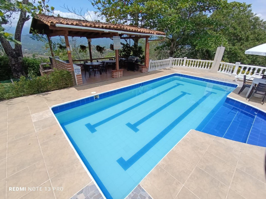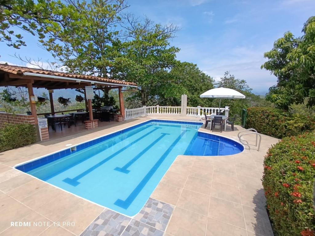 NT - VENTA DE FINCA EN SOPETRAN. Esta propiedad es más que una casa, ¡es un sueño hecho finca!. Cuenta con 4 habitaciones, 5 baños, amplios corredores y una cocina tan grande como tus reuniones familiares. Piscina, salón de juegos, kiosco para asados, canchita de fútbol, juegos para niños y casa de mayordomo. Con área de 4.774 m² de terreno con árboles de mango, limón, plátano, yuca y más. Unidad cerrada con vigilancia 24/7, internet, todos los servicios y papeles al día. Ubicada a solo 5 minutos del pueblo de Sopetrán. Precio: $980 millones Se recibe apartamento en el Oriente Antioqueño o Medellín como parte de pago.