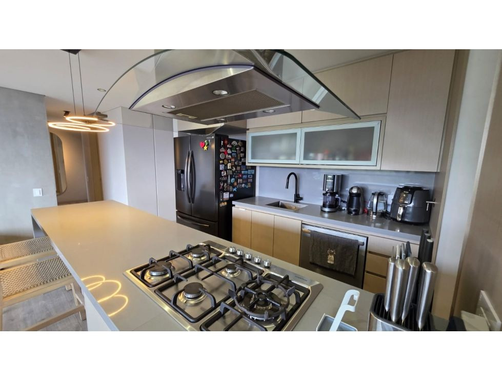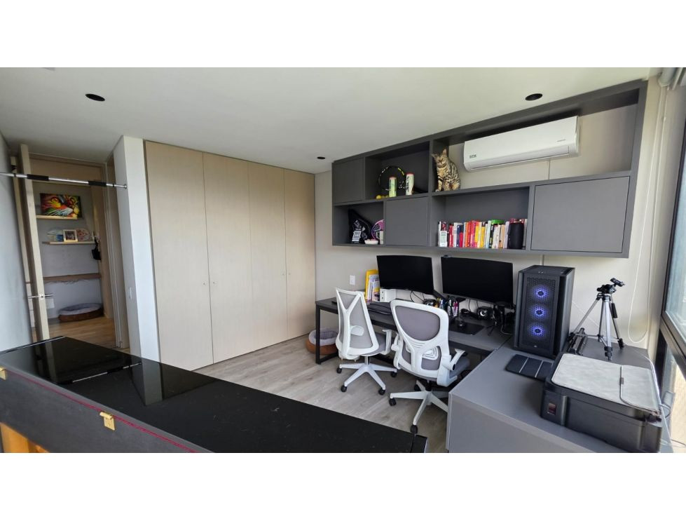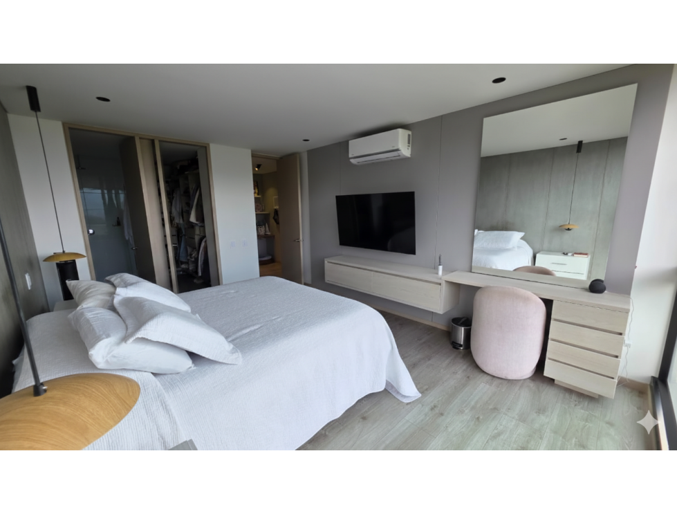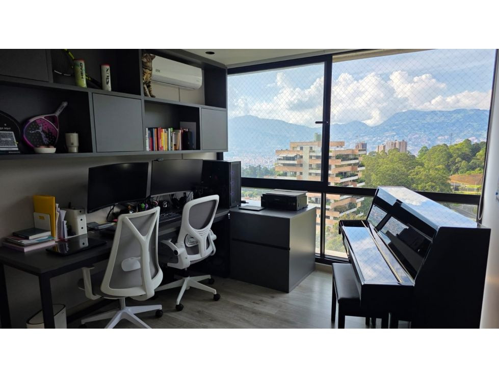 PV-SM-9732076 VENTA APARTAMENTO EN ALTOS DEL POBLADO, MEDELLÍN. PISO ALTO Apartamento de 106 m² con distribución funcional que incluye balcón tipo terraza con BBQ y vista abierta garantizada al norte, cocina abierta con lavavajillas integrada a la zona social, estudio, zona de ropas independiente, dos alcobas con baño privado, la principal con vestier y ambas con doble ventanal de piso a techo, baño social, amplio closet de linos, parqueadero doble lineal y cuarto útil. El apto tiene varias reformas, en el área social tiene el cielo en casetones con luz indirecta, paredes en microcemento en sala y alcobas, aire acondicionado en las alcobas, luces independientes en salón, cortinas y blackout eléctricos. La unidad residencial está compuesta por dos torres de 27 pisos, con 4 apartamentos por piso. Cuenta con piscina climatizada para adultos y niños, carril de nado, gimnasio dotado, salón de yoga, coworking, juegos infantiles, cancha de squash, salones de juegos para niños y adolescentes, salones sociales, zonas verdes, área de BBQ y portería con vigilancia permanente. Cada torre tiene tres lobbies independientes y espacios diseñados para la comodidad de los residentes. Ubicado en el sector Intercontinental de El Poblado, sobre la vía Las Palmas, permite acceso rápido al Túnel de Oriente y la Transversal Superior, facilitando la conexión con el aeropuerto José María Córdova en aproximadamente 20 minutos. VALOR PREDIAL ANUAL $8.700.000