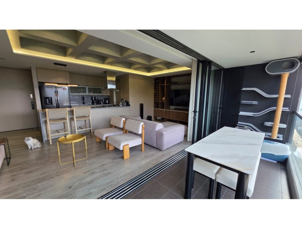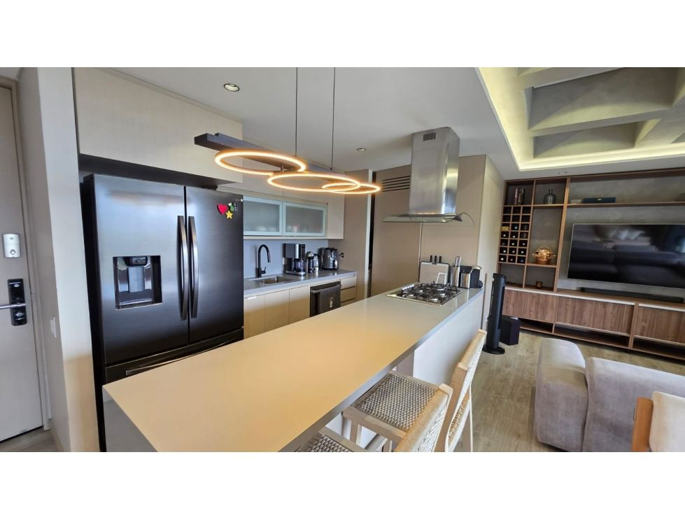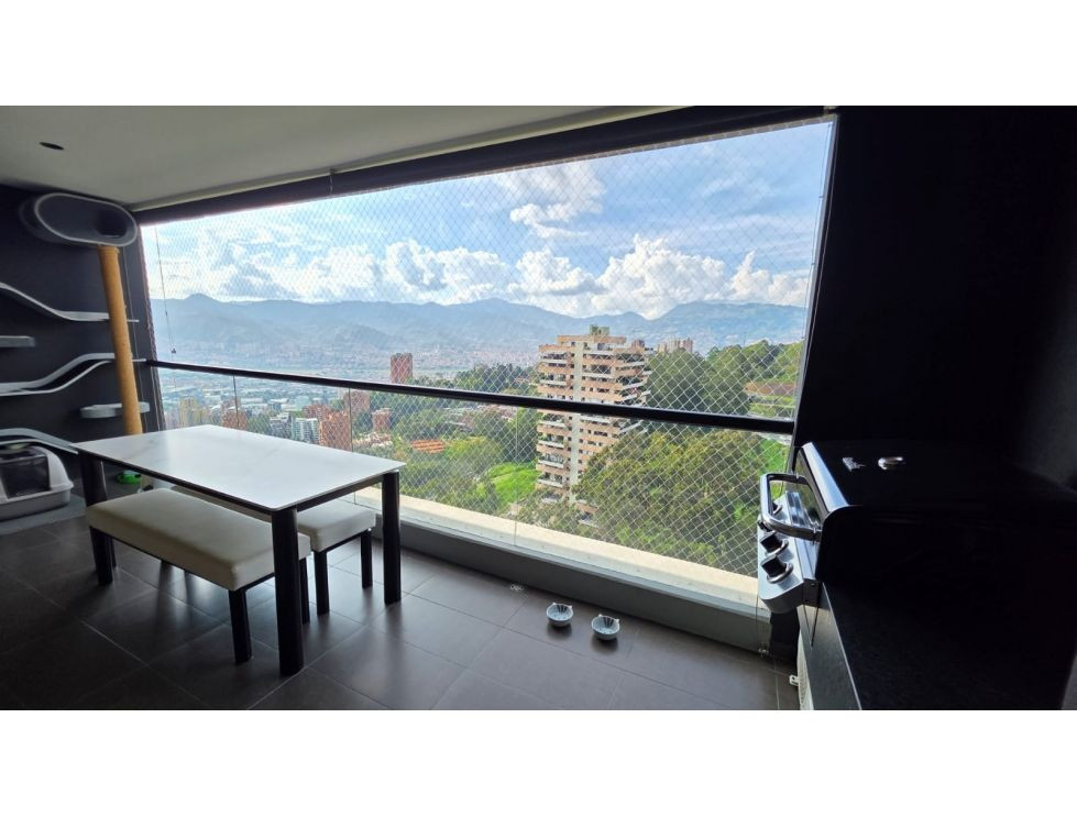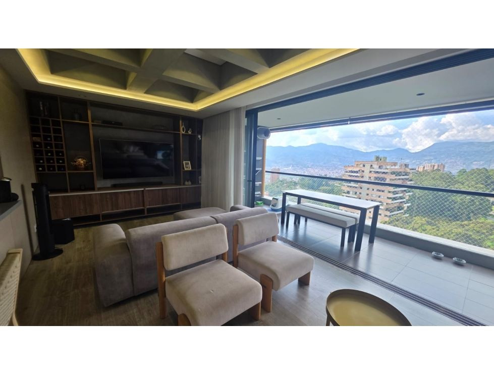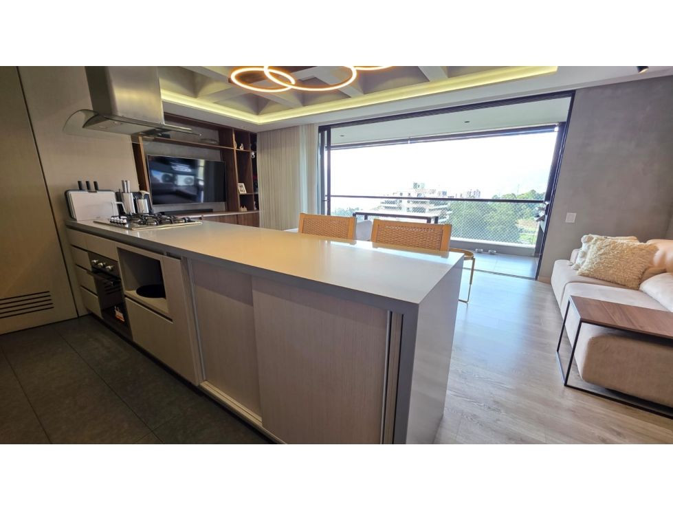 PV-SM-9732076 VENTA APARTAMENTO EN ALTOS DEL POBLADO, MEDELLÍN. PISO ALTO Apartamento de 106 m² con distribución funcional que incluye balcón tipo terraza con BBQ y vista abierta garantizada al norte, cocina abierta con lavavajillas integrada a la zona social, estudio, zona de ropas independiente, dos alcobas con baño privado, la principal con vestier y ambas con doble ventanal de piso a techo, baño social, amplio closet de linos, parqueadero doble lineal y cuarto útil. El apto tiene varias reformas, en el área social tiene el cielo en casetones con luz indirecta, paredes en microcemento en sala y alcobas, aire acondicionado en las alcobas, luces independientes en salón, cortinas y blackout eléctricos. La unidad residencial está compuesta por dos torres de 27 pisos, con 4 apartamentos por piso. Cuenta con piscina climatizada para adultos y niños, carril de nado, gimnasio dotado, salón de yoga, coworking, juegos infantiles, cancha de squash, salones de juegos para niños y adolescentes, salones sociales, zonas verdes, área de BBQ y portería con vigilancia permanente. Cada torre tiene tres lobbies independientes y espacios diseñados para la comodidad de los residentes. Ubicado en el sector Intercontinental de El Poblado, sobre la vía Las Palmas, permite acceso rápido al Túnel de Oriente y la Transversal Superior, facilitando la conexión con el aeropuerto José María Córdova en aproximadamente 20 minutos. VALOR PREDIAL ANUAL $8.700.000
