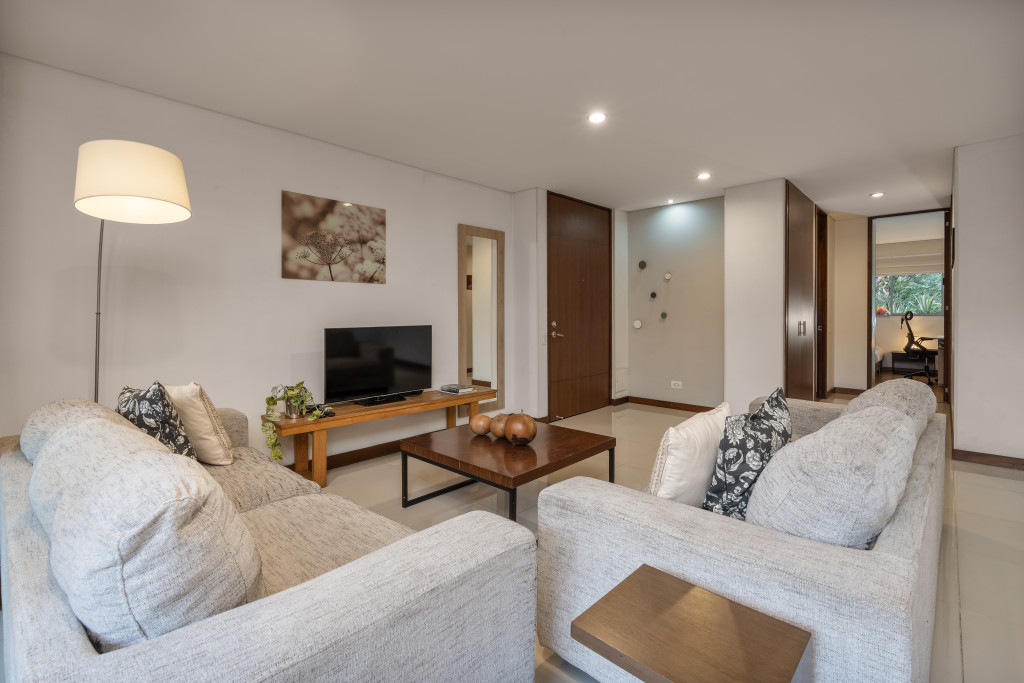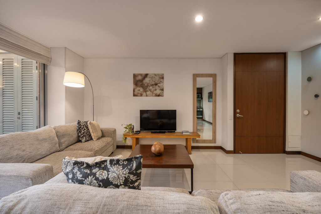 CRD- Vendo apartamento de 124.70 m² totales que combinan diseño, amplitud y terrazas para disfrutar todo el año. 80.20 m² construidos 44.50 m² de terrazas cubiertas 2 alcobas 2 baños Cocina abierta 2 terrazas cubiertas 1 parqueadero cubierto 1 cuarto útil Ubicado en tercer piso, en unidad con: Gimnasio Baño turco Salón social 2 ascensores Vigilancia 24/7 Un apartamento que no solo se vive… se disfruta. Espacios abiertos, luz natural y terrazas que amplían tu forma de habitar la ciudad. Si estás buscando comodidad, valorización y estilo en un mismo lugar, este puede ser el indicado.