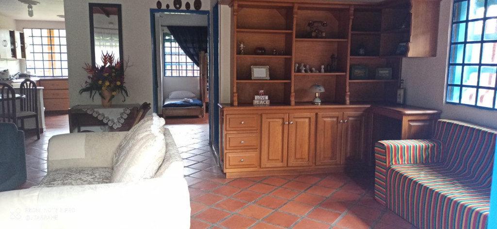 M.O.R. Vende hermosa finca a la orilla de la represa, ubicada en la mejor vereda de Guatapé, la Vereda Quebrada arriba. Con hermosos jardines y un silencio que sólo se ve interrumpido por el cantar de hermosas especies de aves, será tu oasis personal para el descanso en familia. Tiene una casa de 2 pisos con aproximadamente 250 m2. La casa principal cuenta con 2 amplias habitaciones, pero se puede adecuar una tercera habitación, ya que cuenta con mucho espacio social. Sala con una fabulosa chimenea para esos días de frío en los cuales quieras entrar en calor con tu pareja o tu familia. Cocina semi integral, despensa, zona de lavado. En la parte externa encuentras un amplio corredor donde puedes poner hamacas y relajarte, además cuenta con un cuarto de herramientas amplio, que podrías convertir en otra habitación. Adicionalmente, cuenta con un apartaestudio adosado a la casa con cocineta y baño que puedes dejarlo para huéspedes y conservar tu espacio personal o alquilar la casa y ocupar el apartaestudio cuando la tengas rentada. Con más de 5000 m2 en los cuales podrás sembrar más árboles, poner un jacuzzi o un deck cerca a la orilla de la represa para unos espléndidos días de relajación, también podrás construir un muelle, ya que cuenta con ingreso a la represa. La tranquilidad es tal, que nunca querrás salir de allí. Agenda hoy mismo una cita con nosotros y ven a conocer tu paraíso terrenal.